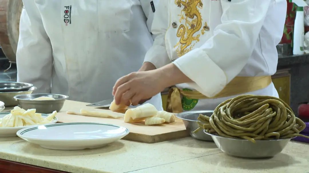 在柳州市汇隆食品科技有限公司的实训室里,黎元龙正在给几名学徒讲授柳州螺蛳粉的制作技艺。灶台旁,黎元龙熟练地把酸笋先削出薄片,再切成长度、厚薄一致的条,刀工相当熟稔。但到了调料时,黎元龙并没有凭经验和感觉,而是使用电子秤仔细进行称量。对此,黎元龙有自己的坚持。