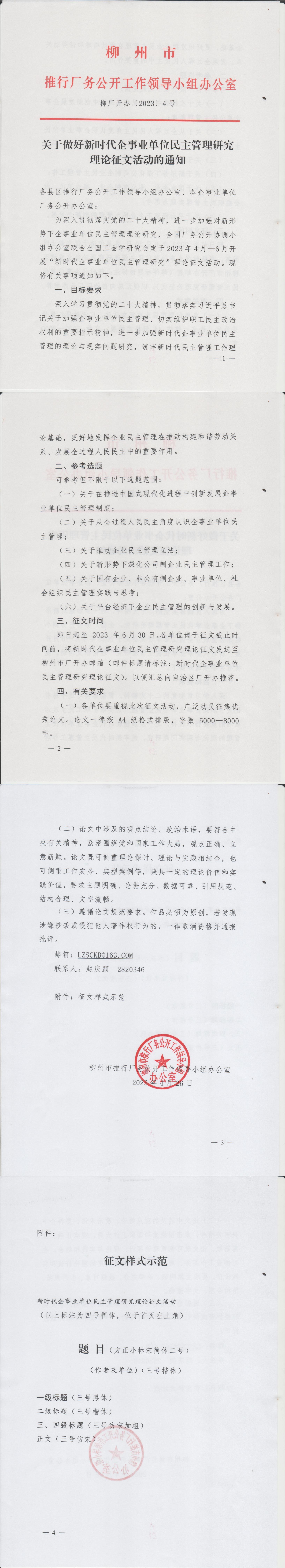 柳厂开办〔2023〕4号 关于做好新时代企事业单位民主管理研究理论征文活动的通知