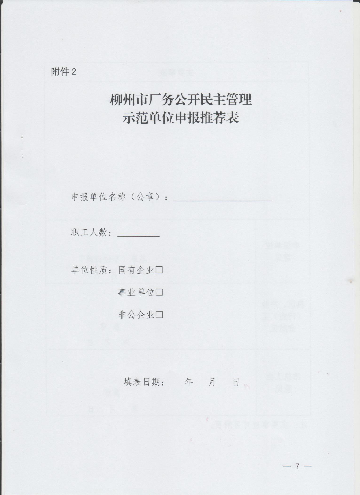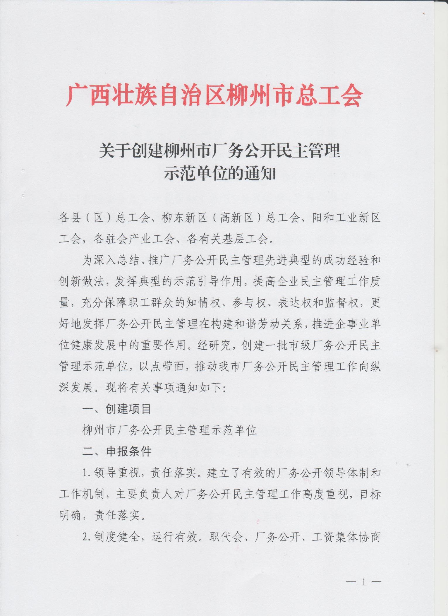 关于创建柳州市厂务公开民主管理示范单位的通知