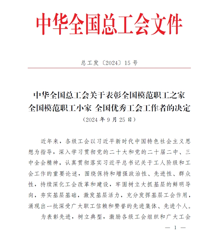 总工发〔2024〕15号 中华全国总工会关于表彰全国模范职工之家全国模范职工小家 全国优秀工会工作者的决定.pdf